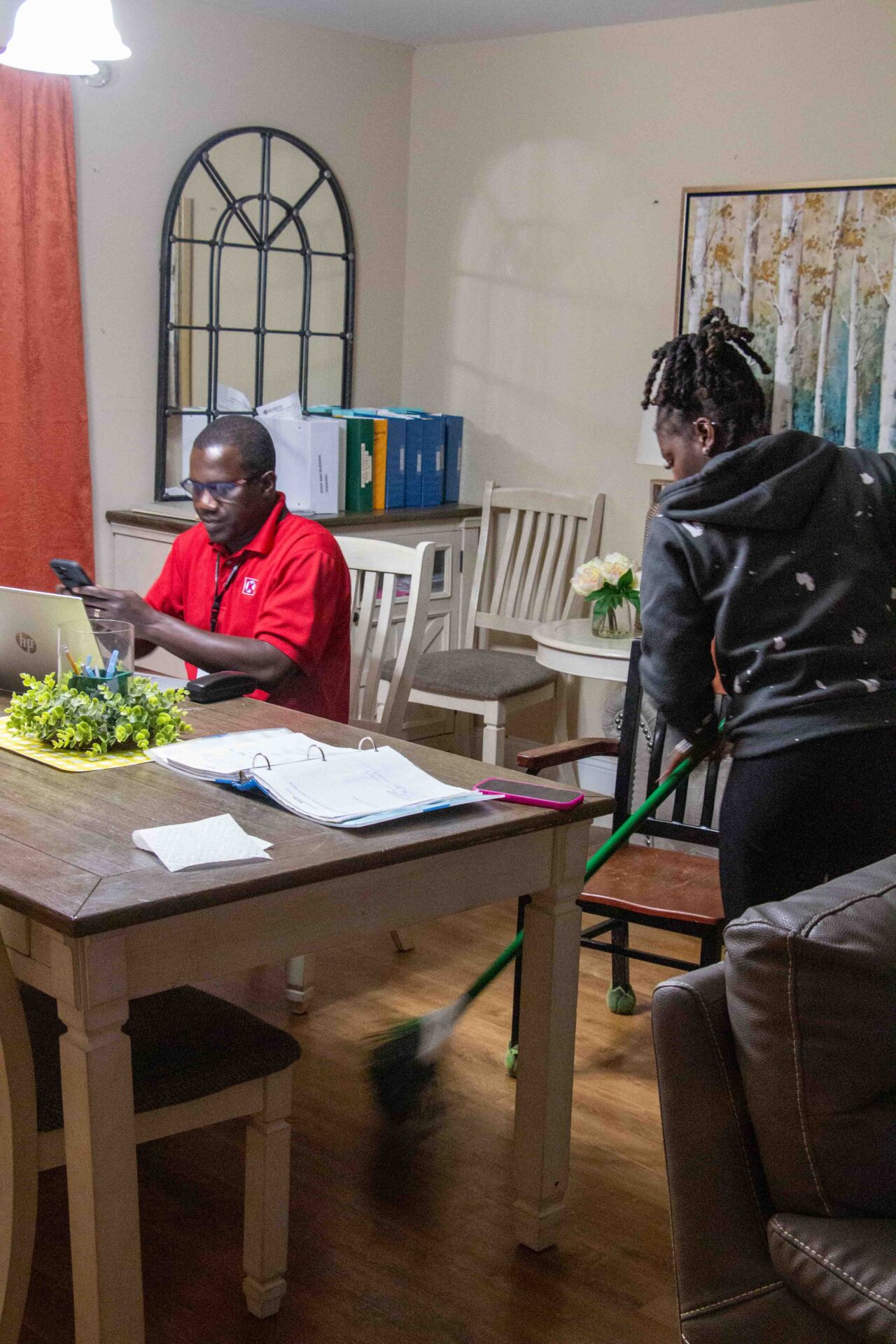 - 9 pm: As the day winds down, our direct care staff are hard at work—tidying up shared spaces and taking notes to keep the next shift informed. Their attention to detail helps every evening end smoothly and safely.